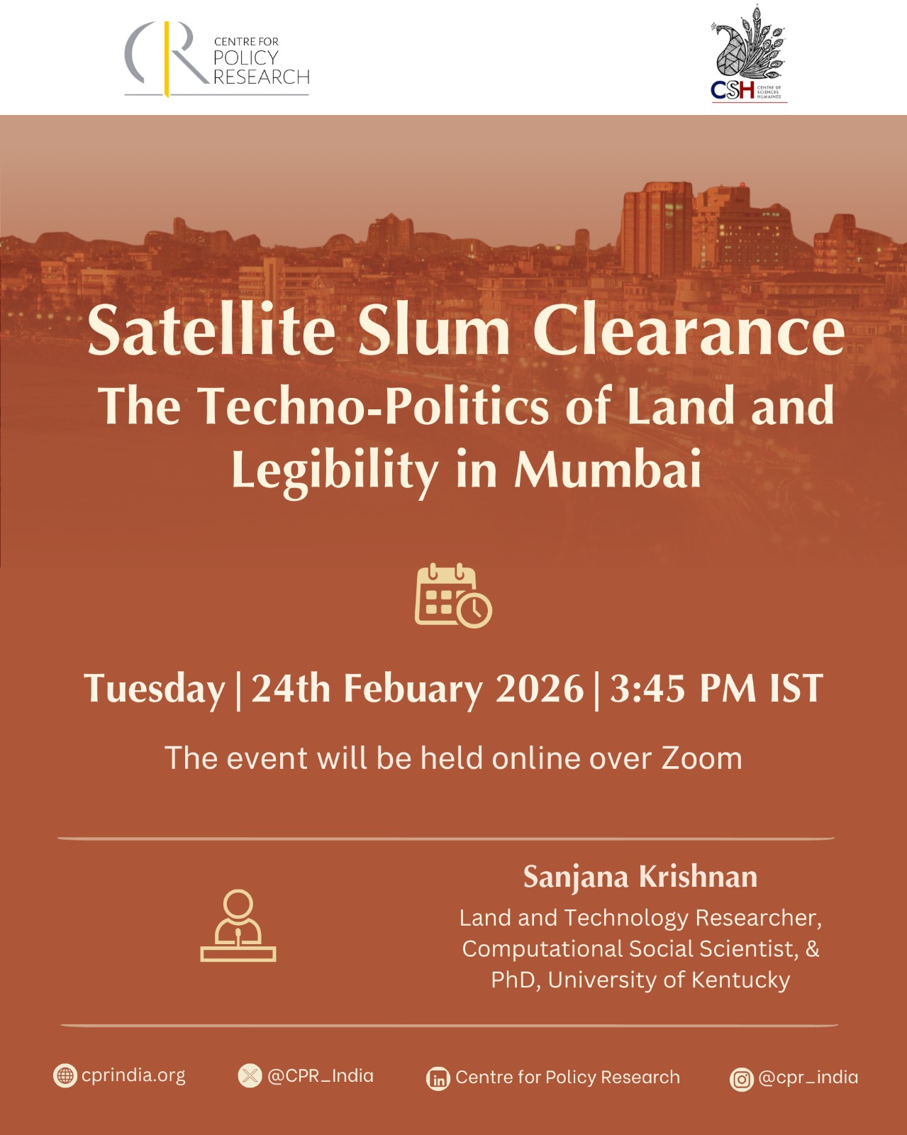Satellite Slum Clearance: The Techno-Politics of Land and... Feb 24 February 24, 2026 3:45 pm to 5:15 pm